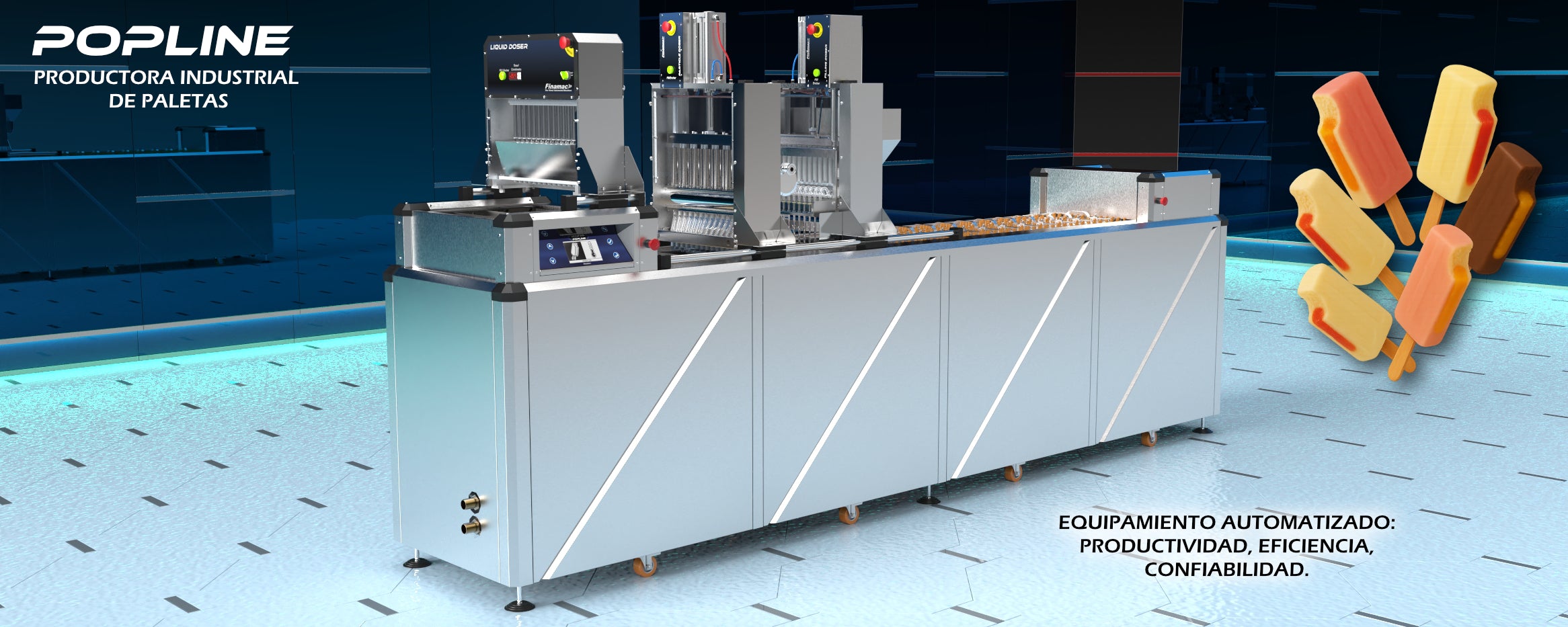 Pop Line – Máquina industrial para paletas de hielo. La solución industrial más vendida del mundo para la producción de paletas de hielo.
