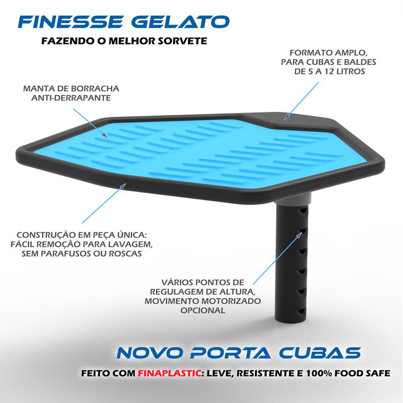 GANHOS IMPORTANTES NOS NEGÓCIOS - Leve e resistente, cantos arredondados, 100% sanitário, abraça o cilindro por completo e abriga a articulação da tampa, em peça única de FinaPlastic. Parte inferior pode ser lavada sem qualquer desmontagem. Solução definitiva e exclusiva para escorrer sorvete/creme e água de limpeza.