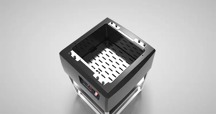 Pode ser utilizado com base de aço inox; ou colocado diretamente em uma bancada ou mesa de trabalho.