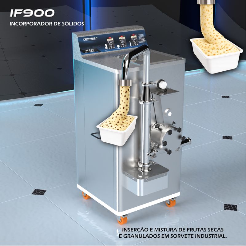 Este equipamento é utilizado para incorporar automaticamente ingredientes ao sorvete ou açaí produzido de forma contínua, aumentando o valor agregado do produto final e possibilitando a criação de novos sabores em sua linha de produtos.