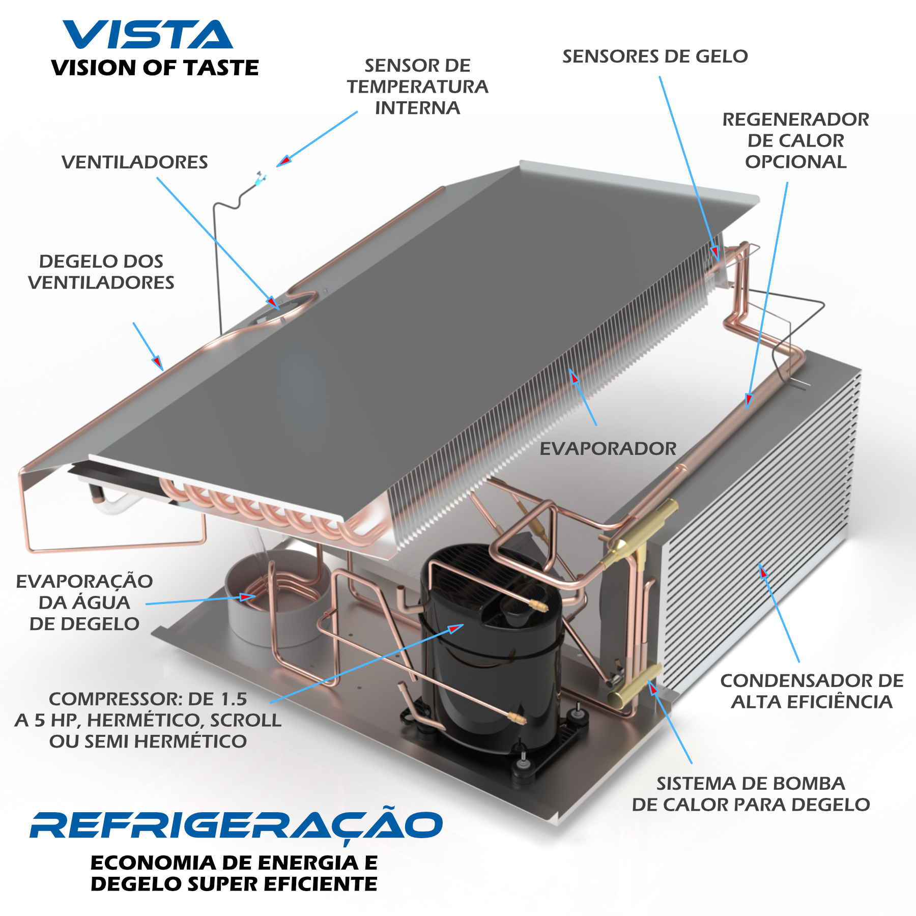 GANHOS IMPORTANTES NOS NEGÓCIOS - Refrigeração superdimensionada para alta temperatura e umidade, como no litoral, por exemplo. Degelo por bomba de calor, evita obstrução do fluxo de ar frio no sorvete. Regenerador de calor: aumenta a capacidade frigorífica em 15% e diminui consumo de energia. No frio ou no calor, sorvetes e picolés estarão sempre prontos para aumentar vendas.
