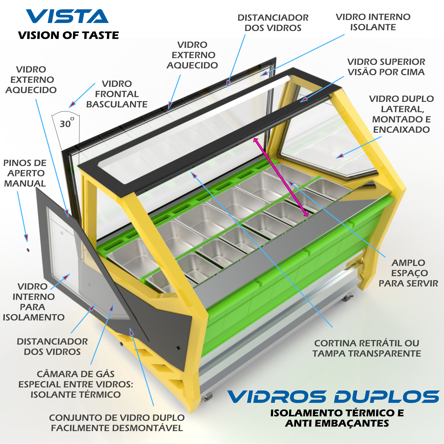 GANHOS IMPORTANTES NOS NEGÓCIOS - Indo além dos padrões de design internacional, a Vista resultou num visual impactante e sem similar, não deixando de lado sua funcionalidade. 90% das partes plásticas são recobertas com vidro temperado ou aço inox, conferindo-lhe nobreza e elegância compatíveis com os mais requintados negócios do ramo.