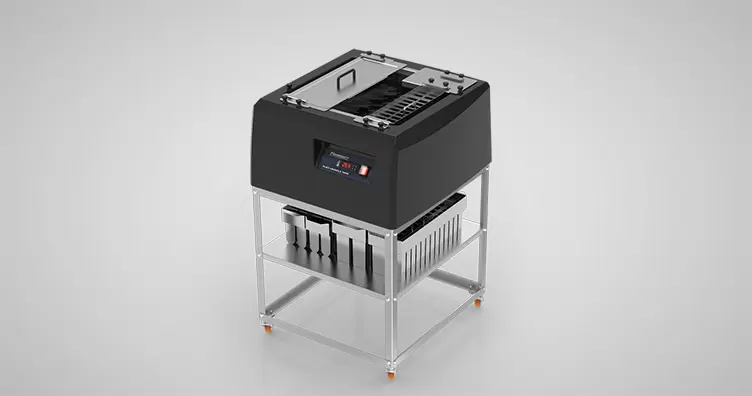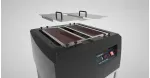 It consists of a tank of warm water where the ice pops are placed for a few seconds and the temperature is electronically controlled. The thermally controlled process of the ice pop mold being dipped into the tank for a few seconds causes a heat shock that allows the ice pops to be loosened from their