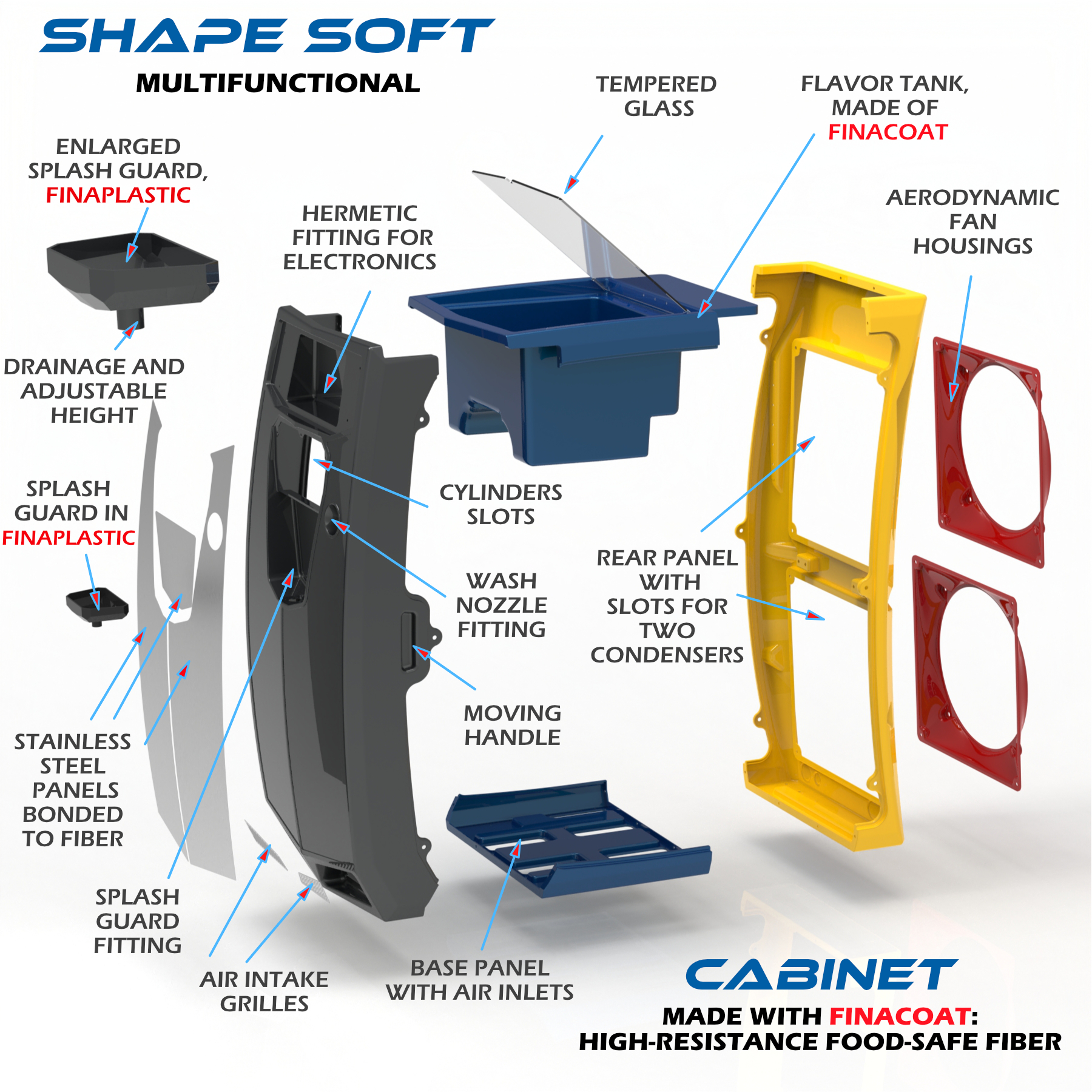IMPORTANT GAINS IN BUSINESS - Used in aircraft and Formula 1, the cabinet is built from high-resistance fiber with smooth, seamless curves impossible to achieve with stainless steel. Its aerodynamic airflow ensures efficient cooling. The machine is 40% lighter and available in multiple colors to match your décor. Components are easily replaceable. Food-contact areas are coated with FinaCoat. Fully washable and designed to attract consumers when on display - driving significant sales growth.