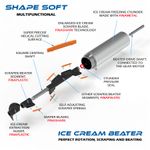 2- FinaShark (Softening Hardness Aided by Rotating Knurling) is an ice cream scraping process based on the cutting power of shark teeth, which provides a 30% reduction in the effort of the electric motor that moves the beater/scraper, in addition to drastically reducing the size of the ice crystals formed, resulting in much creamier ice cream, stable and durable. Blades made of special plastic, easy disassemble and clean. Does not retain ice cream or release harmful residues.