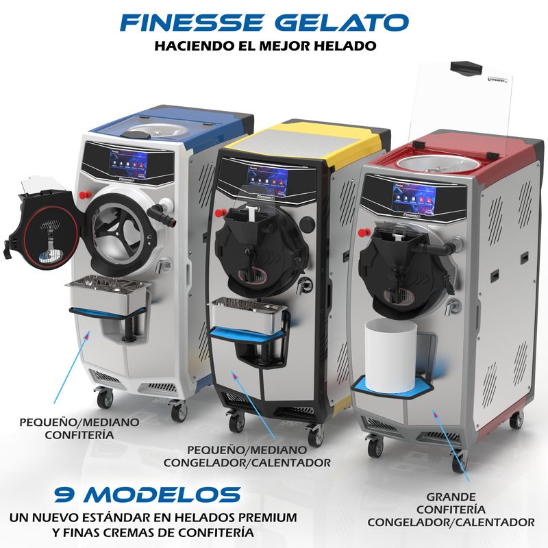 IMPORTANTES GANANCIAS EN LOS NEGOCIOS - Control inteligente de la consistencia del helado, mayor porcentaje de agua congelada y menor tamaño de cristales de hielo: calidad extraordinaria, que atrae fuertemente al consumidor. No es necesario insertar volumen, tipo de mezcla, etc.: ahorro de tiempo. Vidrio templado grande, 100% lavable, pantalla táctil de 10” de alta resolución, numerosas funciones de conectividad, operación y mantenimiento. Utiliza hardware y software finatronic, enfocado en la producción de helados.