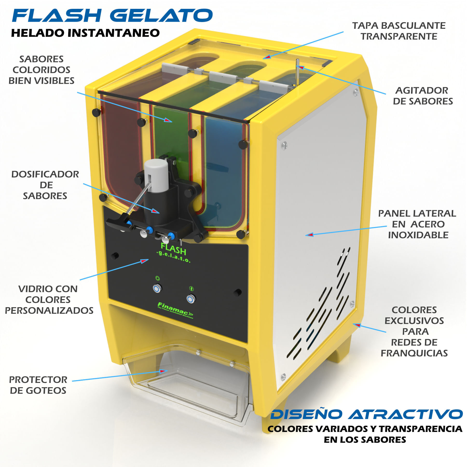 IMPORTANTES GANANCIAS EN LOS NEGOCIOS - Los colores de los sabores atraen al consumidor y la tapa transparente de los tanques potencia esto, además de ser muy fácil de desmontar para su limpieza, todo 100% sanitario.