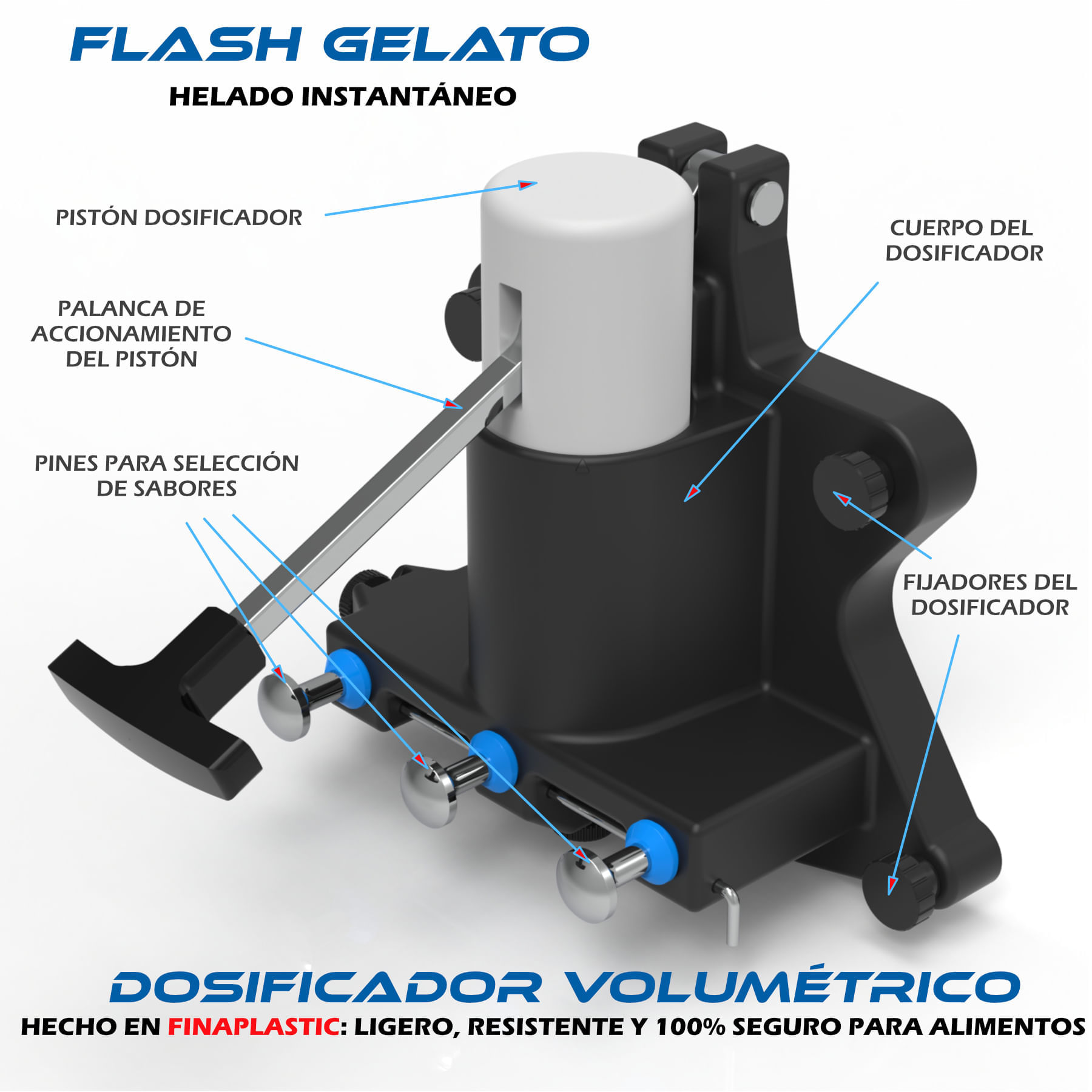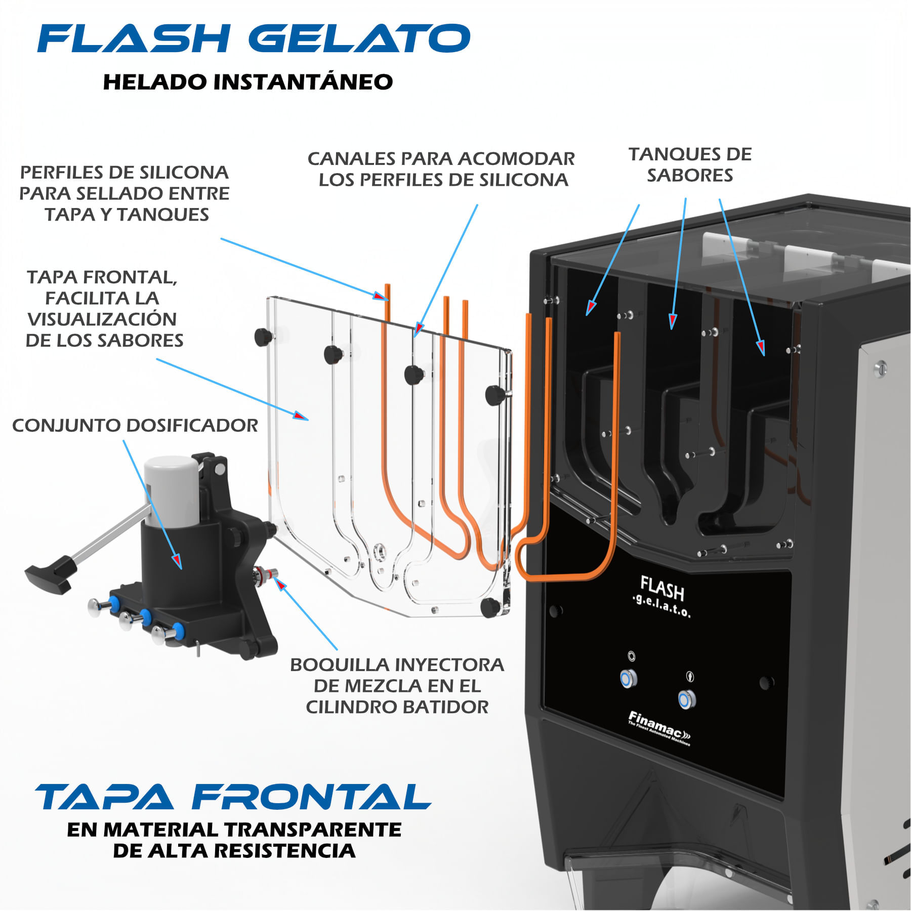 1- FinaPlastic es un proceso de fabricación de plásticos certificado, exclusivo de Finamac, a partir de componentes seleccionados que dan como resultado un material inerte al contacto con los alimentos y el cuerpo humano, muy ligero, con alta resistencia mecánica, alta resistencia al calor y al frío, alto aislamiento térmico y baja adherencia al helado. El proceso permite la fabricación de piezas complejas en un solo cuerpo, sin costuras y sin esquinas afiladas, una tecnología similar a la utilizada en la industria aeroespacial. Es el resultado de muchos años de investigación en ingeniería dedicados a la fabricación de helados de alta calidad.