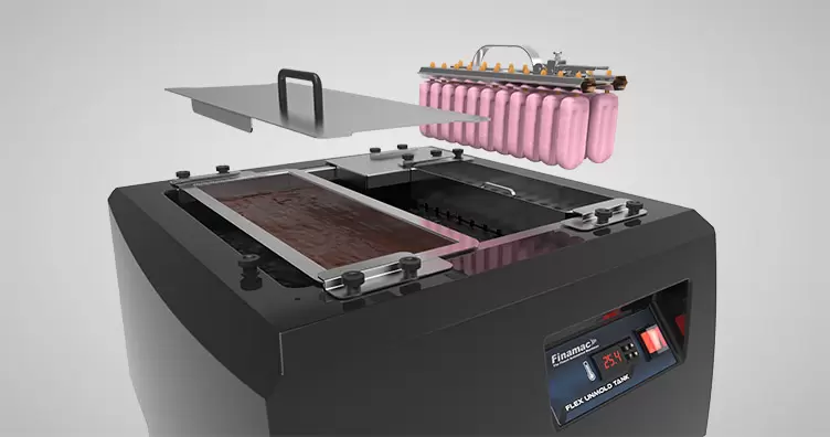 Consiste en un depósito de agua caliente en el que se colocan los moldes durante unos segundos, la temperatura se controla electrónicamente. El proceso de desmoldeo controlado térmicamente cuando se introduce en el tanque durante unos segundos provoca un choque térmico que derrite las cuchillas solo ligeramente y permite extraerlas del molde casi al
